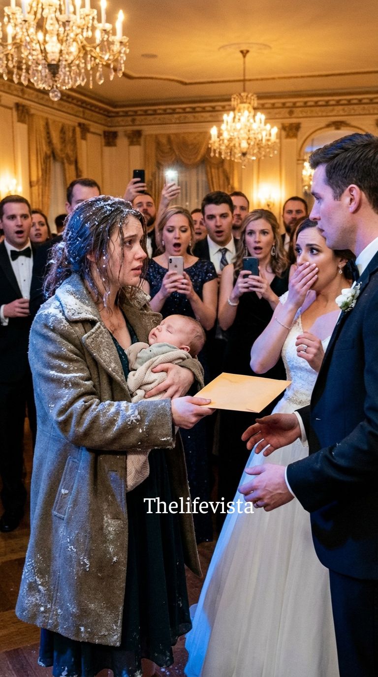 Tonight, Mason’s wedding looked like a magazine spread. Crystal chandeliers. A string quartet. His new bride, Kiernan, glowing in satin like she’d won something. I stood at the back of the ballroom with Noah asleep against my chest, his warm breath fogging the air near my collarbone. My cheap black coat didn’t match the room, and that was the point.