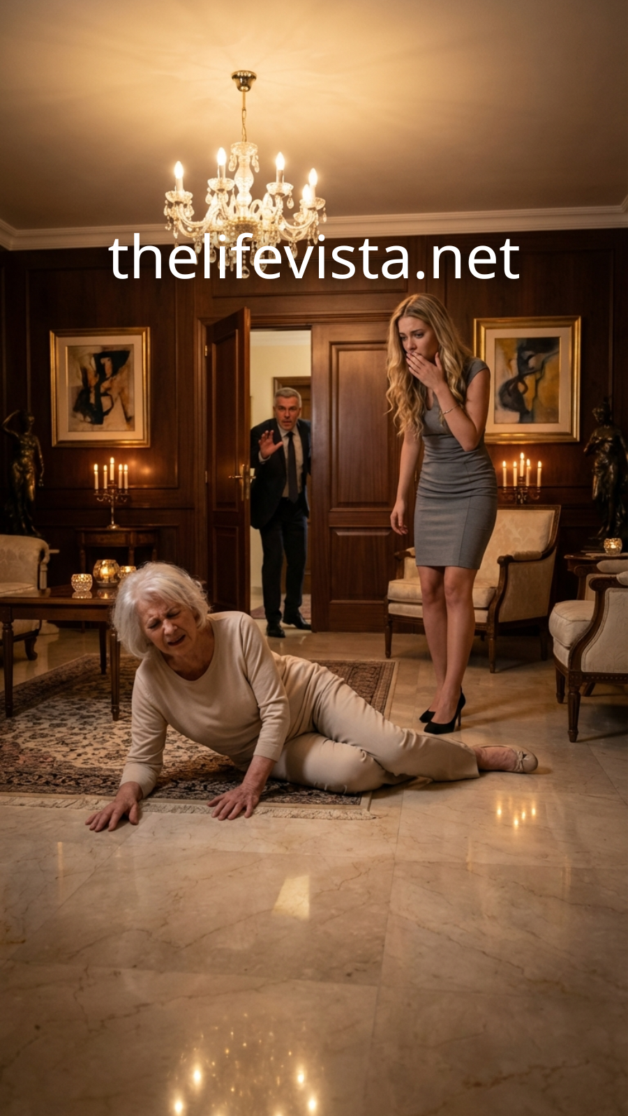His fragile mother lay crumpled on the floor, trembling and crying softly. Standing over her was Vanessa, one elegant stiletto heel raised in the air.