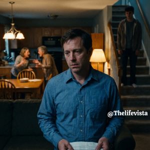 The house went still. Not the polite stillness of a family listening—an alarmed stillness, like everyone’s instincts had stepped forward. Mom, Karen, was the first to move. She rushed from the kitchen with a dish towel in her hands, her face bright with the welcome she’d rehearsed, and then watched it drain off as she took him in.