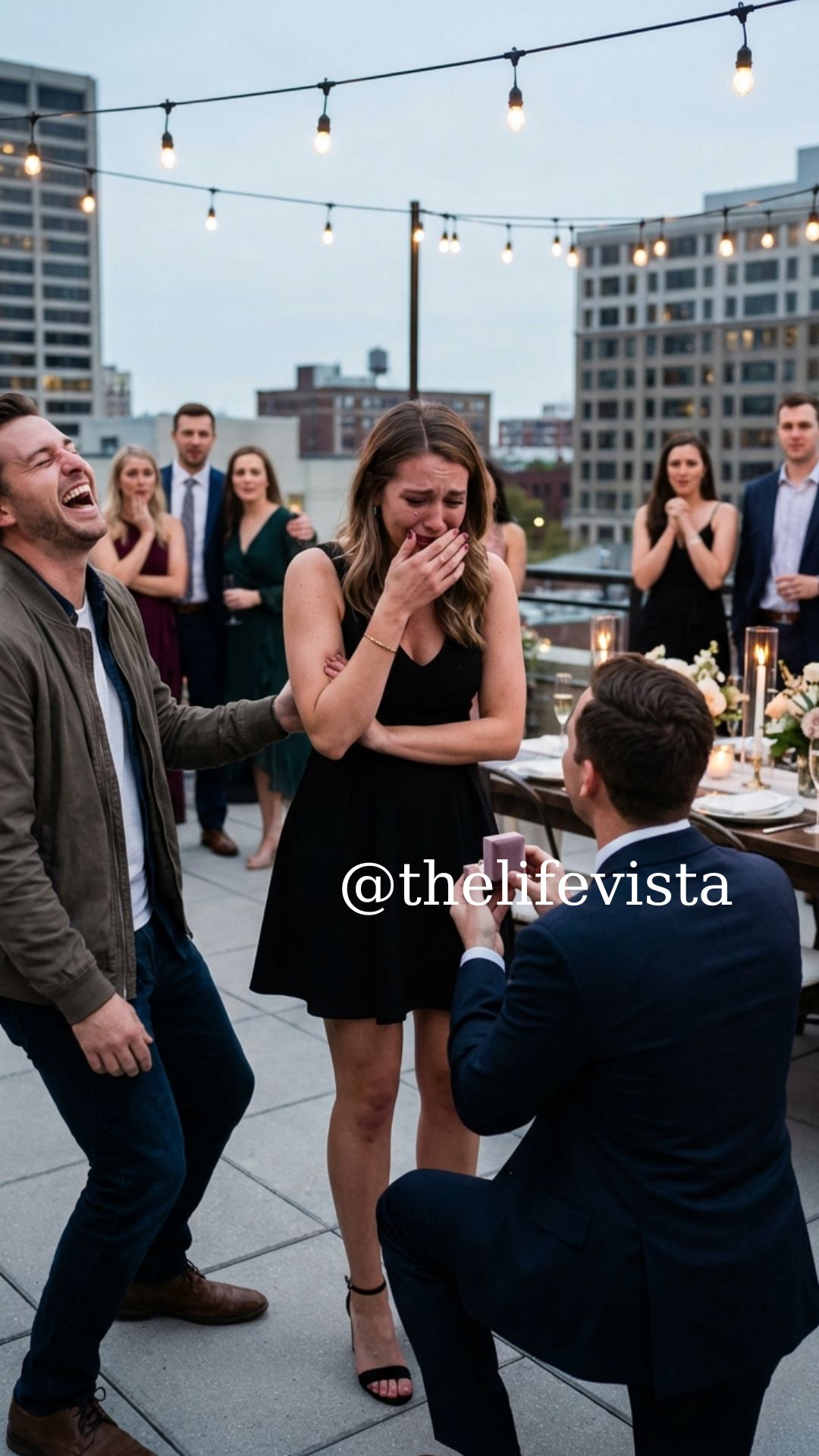 I barely registered him at first. My world had shrunk to Ryan’s face, the ring box, my own heartbeat. I nodded yes, and Ryan pulled me into a hug that made the whole city disappear.