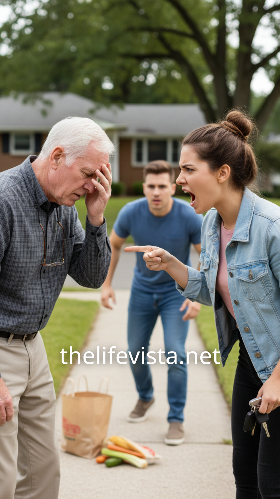 David had just pulled into the driveway, grocery bags in his hands. The moment he saw his father’s red cheek and his wife clutching the keys, the bags dropped to the ground.