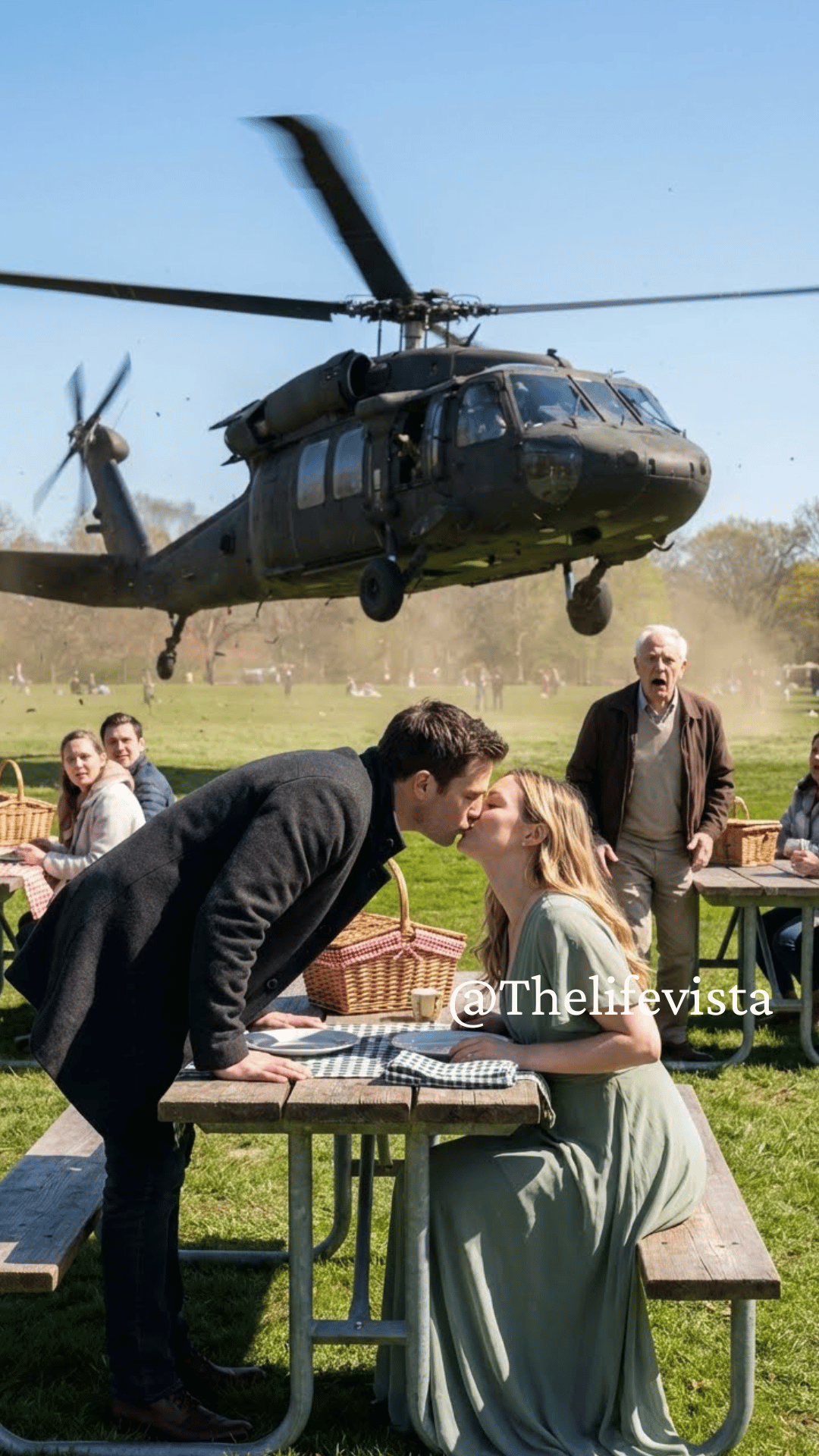 “Sorry I’m late,” he said casually, as though stepping out of a helicopter into a backyard was perfectly ordinary. “Meeting ran over. But I couldn’t let you have dinner here without backup.”