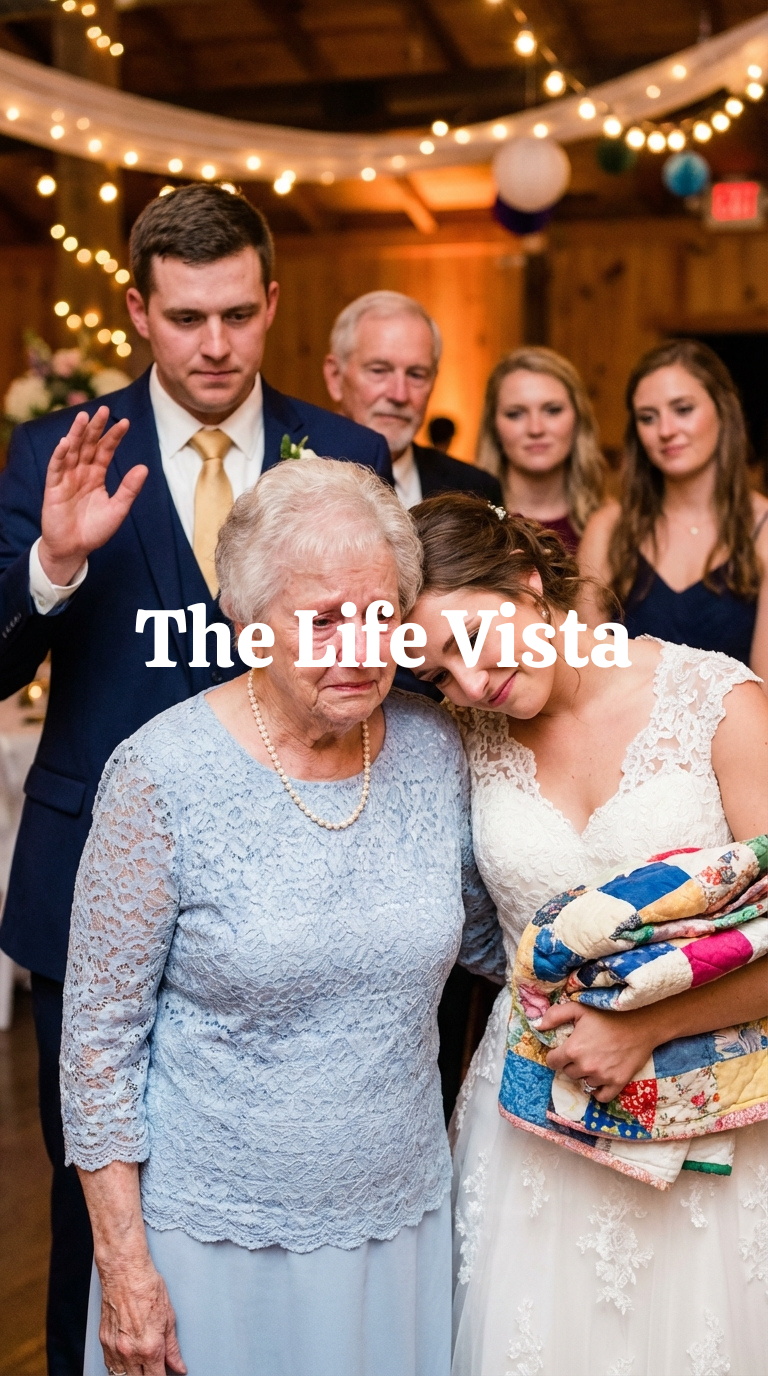 Outside, under the lights, I tried to breathe. I thought of Thomas. Of David. Of all the love stitched into that quilt. Then a hand grabbed mine—hard. “Grandma, don’t go.” Liam’s eyes were red, his jaw clenched. Before I could stop him, he pulled me back inside, reached for the microphone, and said, “This wedding is over.”