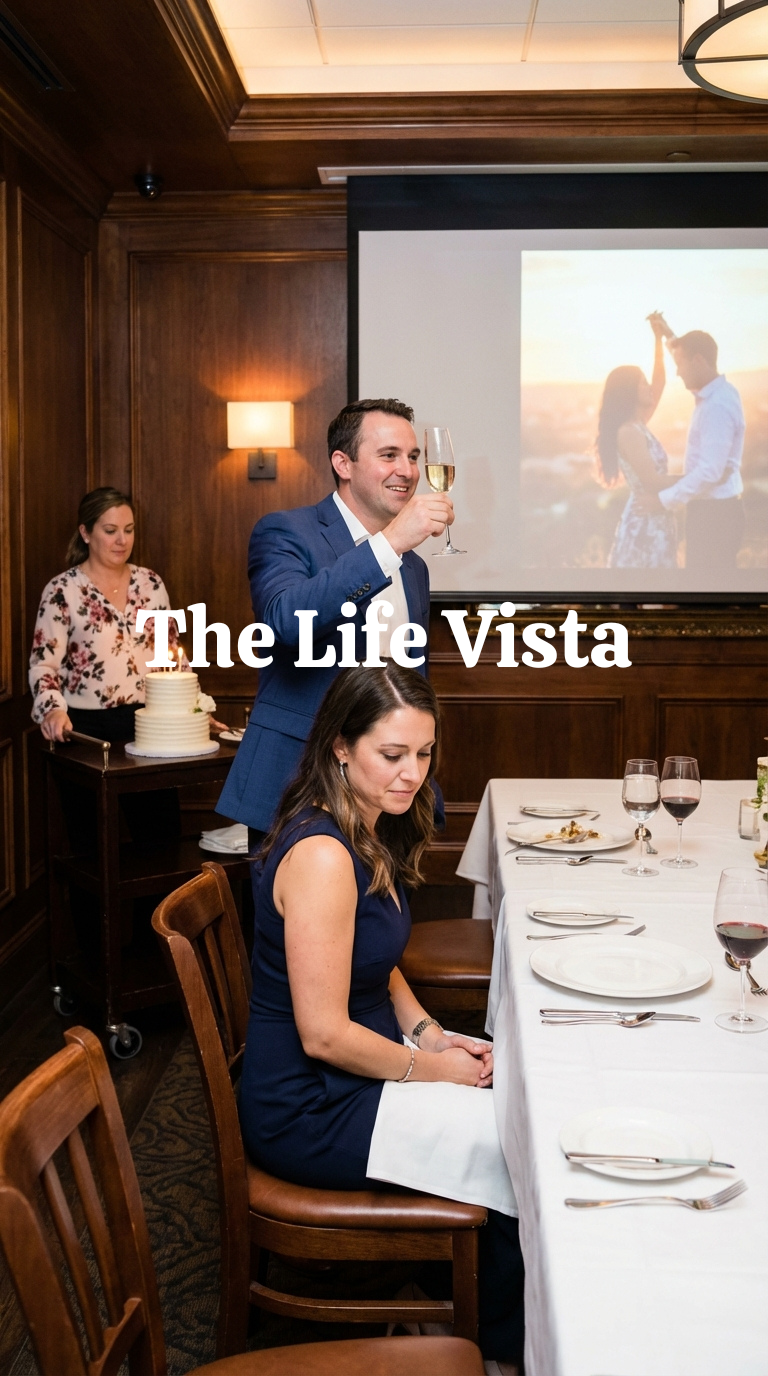 Before I could answer, she turned toward the projector screen Julian had arranged to show a carefully curated slideshow of smiling vacations and staged holidays.