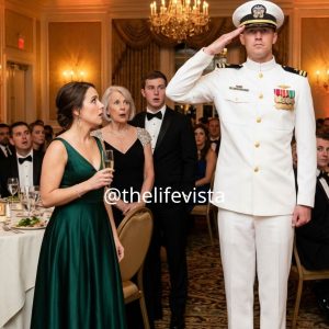 At the birthday banquet, her family openly mocked the eldest daughter, whispering that she had no real career and nothing worth respecting. Then, without warning, a Navy officer approached, stood tall, and saluted her, and in that single moment, every lie and assumption they had clung to started falling apart.