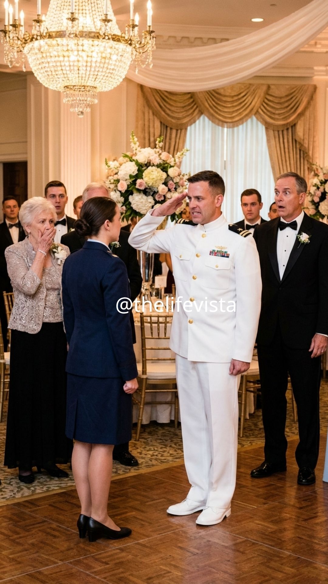 Then, in front of my mother, my father, my sister, the bridal party, and half the reception line, Captain Logan Hayes came to full attention.