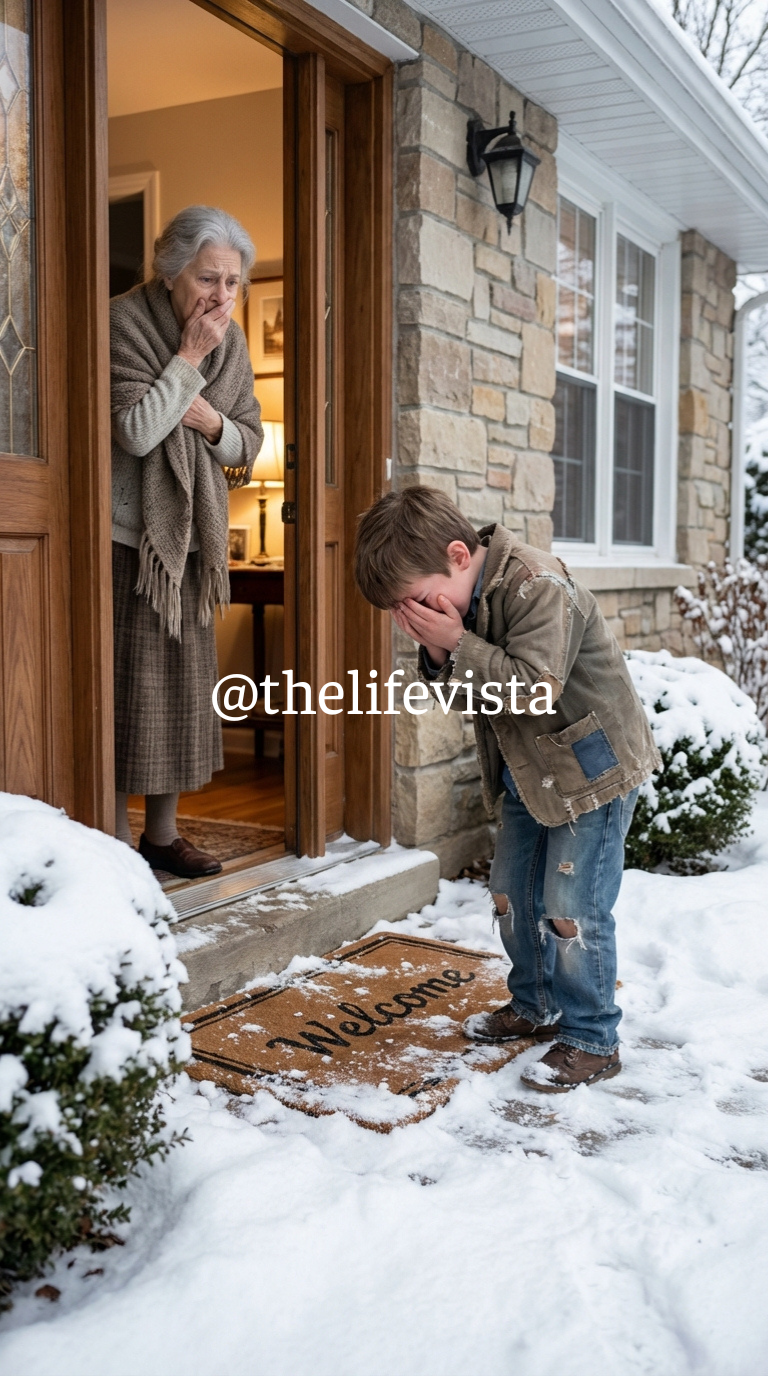 I pulled on my robe, the thick blue fleece my son Peter had given me two Christmases ago—a gift chosen by his wife, I was sure, given the receipt was still in the pocket—and made my way down the stairs. My knees protested the cold draft, but I moved quickly, my hand instinctively reaching for the heavy flashlight I kept on the entryway table. Through the frosted glass panel beside the door, I could make out a silhouette. It was small, hunched, and shivering violently. I unlocked the deadbolt and swung the door open. A gust of December wind, laced with sleet, nearly knocked me backward. It brought with it the smell of wet pine, ozone, and palpable fear.