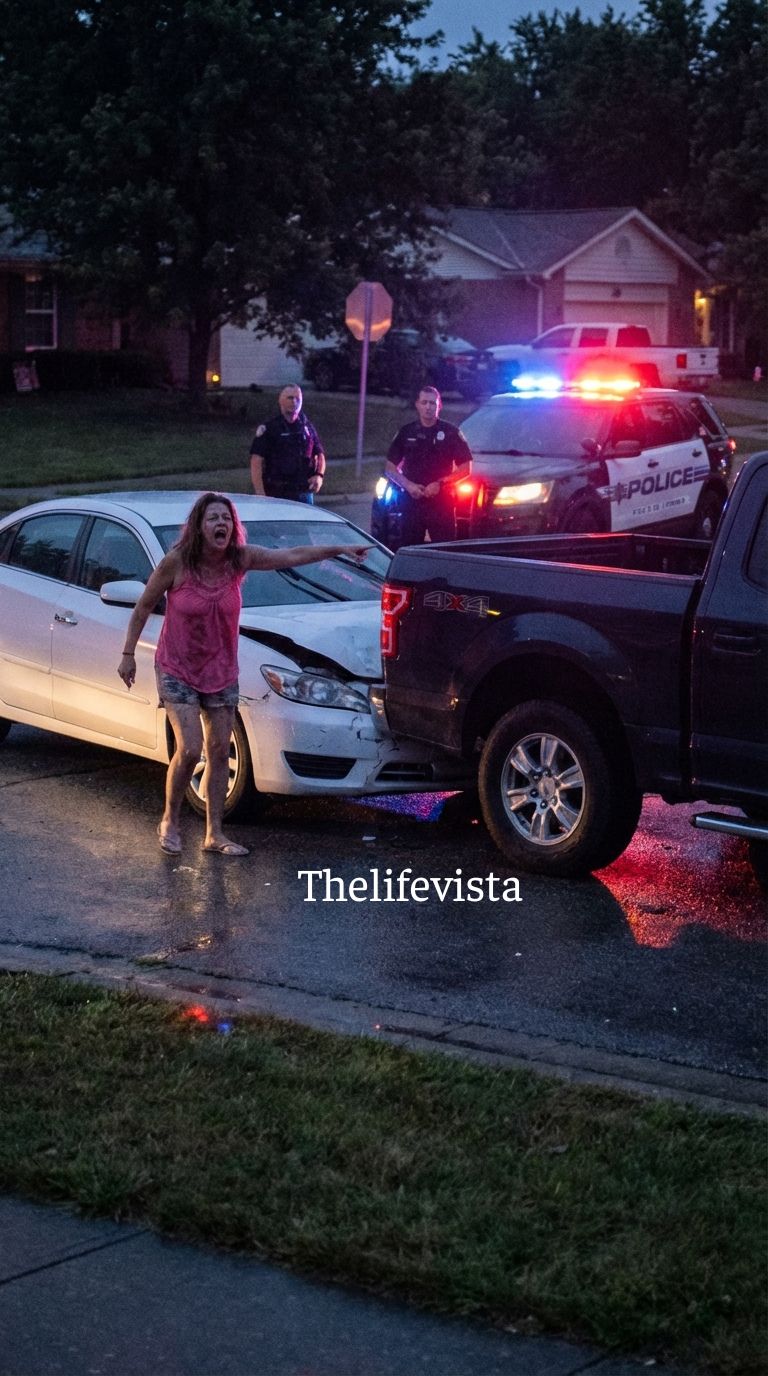 Vespera Vance appeared sprinting down the street wearing running shoes and a bright athletic jacket, her expression shifting instantly from confusion to pure disbelief as she saw the truck pressing against her vehicle.