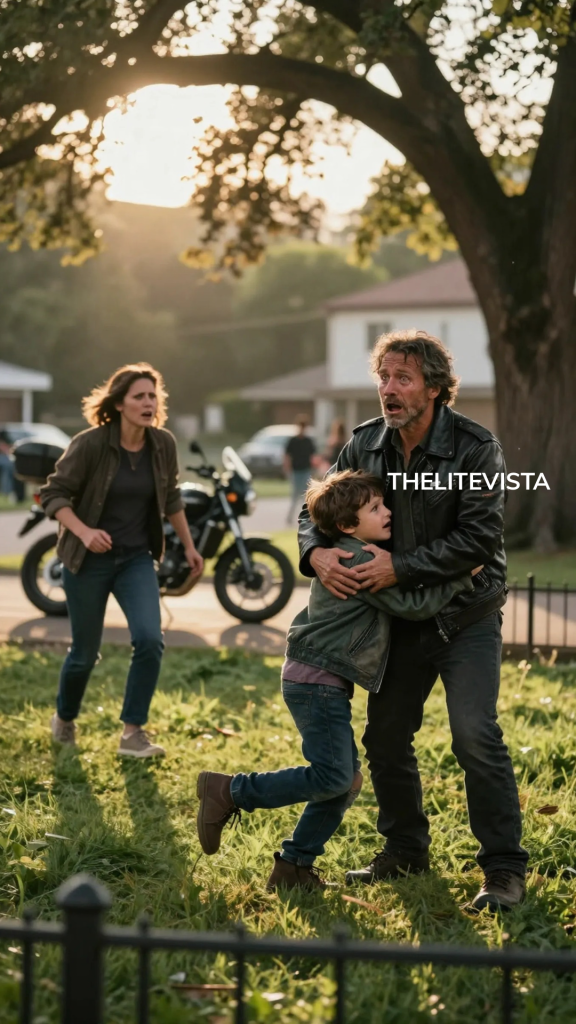 He ran straight up to the man, threw both arms around his waist, and pressed his face into the leather jacket in a full, unquestioning child’s embrace, the kind of hug small children give only when they assume with absolute certainty that they will be held back.