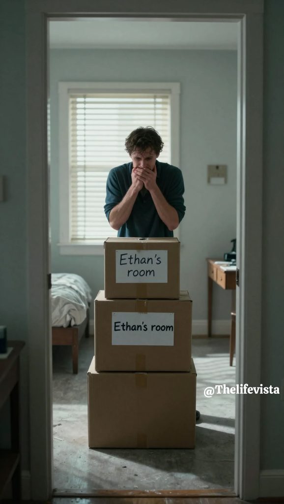 On top of them, taped in mom’s neat handwriting, was a note that said, “Ethan’s room.” I just stood there staring, my hands shaking. I’d been gone less than 2 weeks, and they’d erased me like I’d never existed. My photos, my books, my guitar gone. I ripped open one of the boxes, hoping maybe they’d just pack my stuff away.