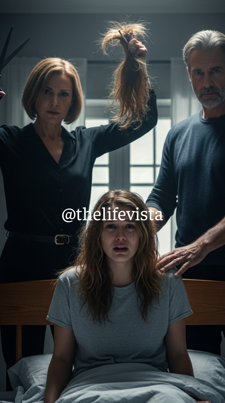 The scream died in my throat. I stared at the reflection, unable to recognize the woman looking back. My hair had been hacked off. It wasn’t a cut; it was a mutilation. Jagged chunks were missing. One side was shorter than the other. The back was chopped almost to the scalp in patches. It looked as though a child had taken dull craft scissors to it in a fit of rage.