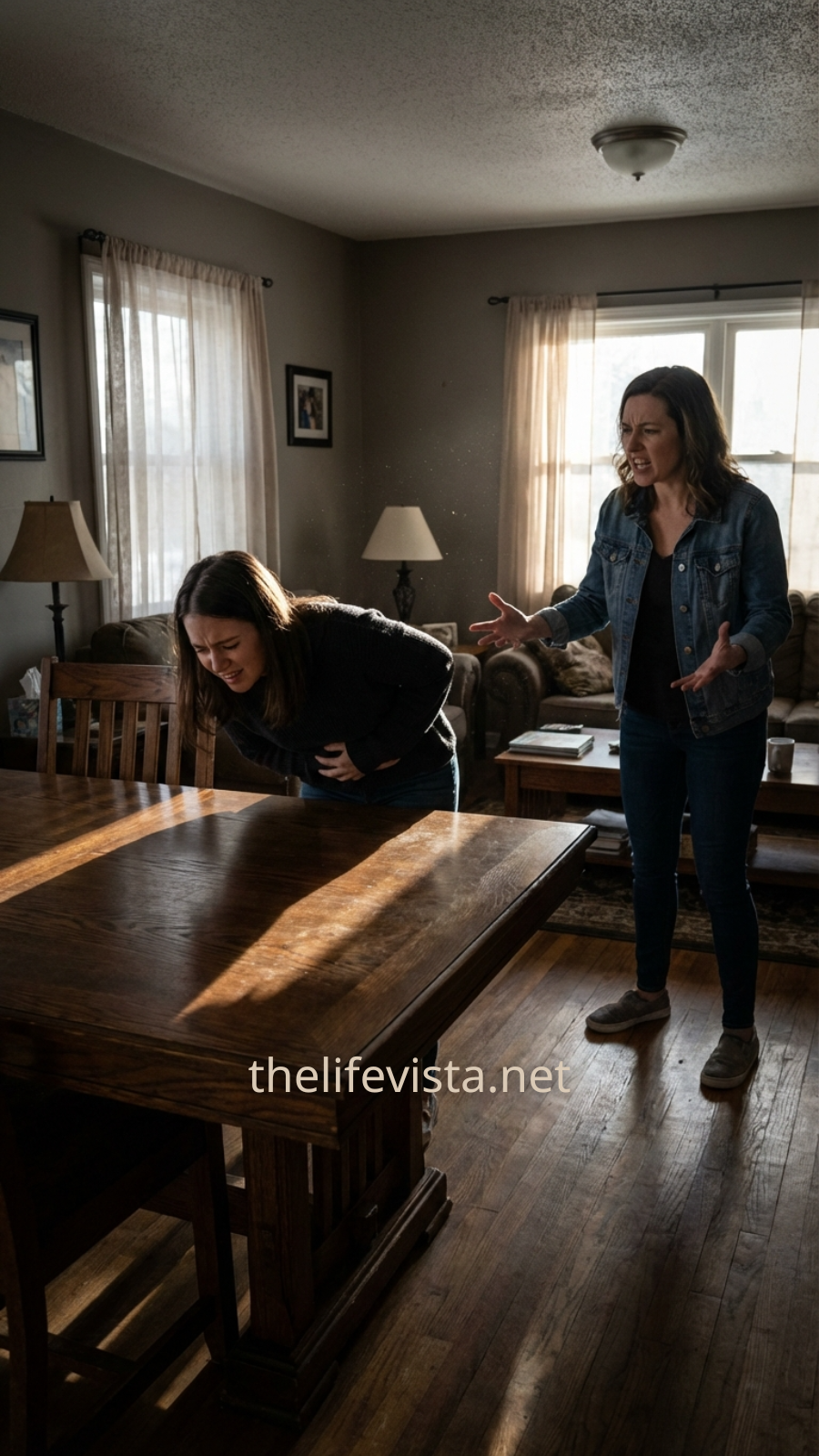 The sound of a rib cracking is something you never forget. It’s sharp, wet, and final — like a dry branch snapping under too much pressure. My name is Emily Carter, and I heard that sound one quiet Saturday afternoon when my sister, Madison, slammed me into the corner of our mother’s heavy oak dining table.