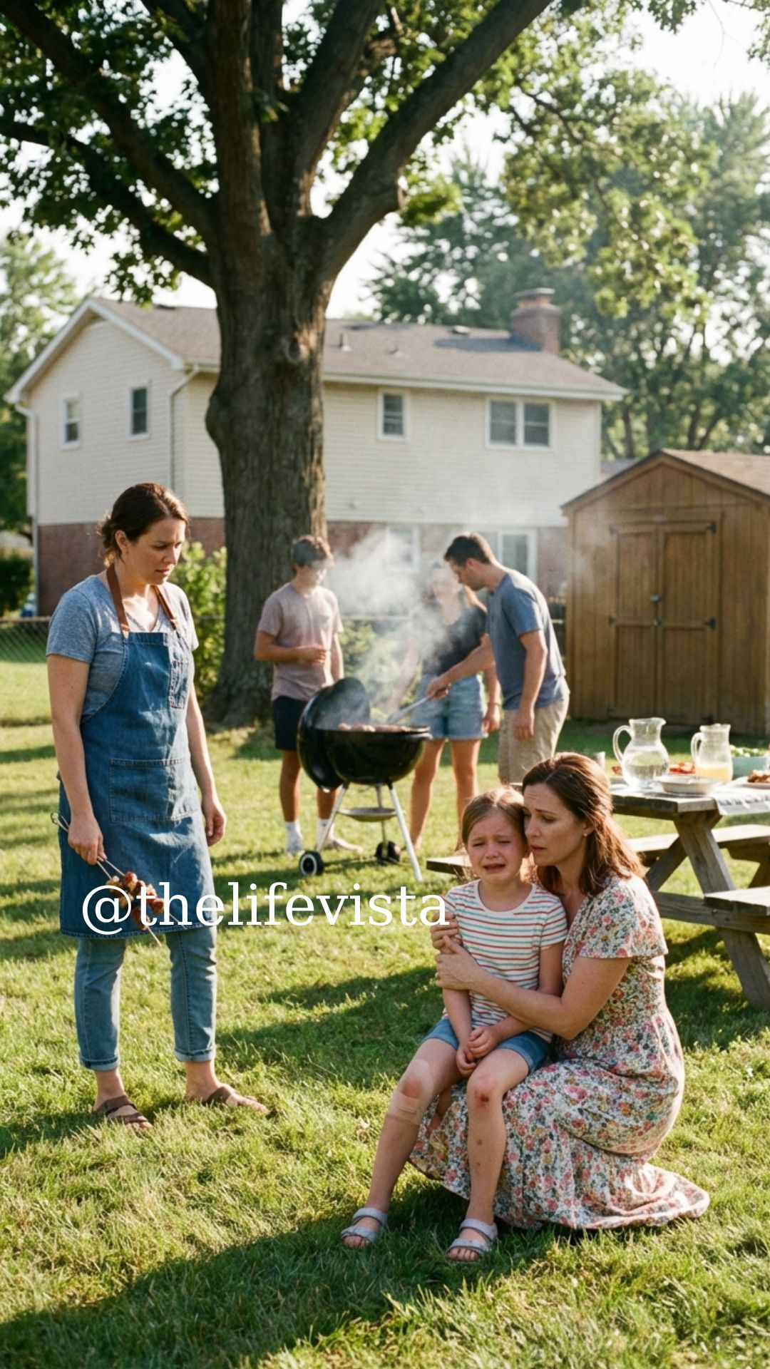 Relatives who had been enjoying the barbecue were now gathering around us, their voices blending into confused murmurs that sounded far more annoyed than concerned.
