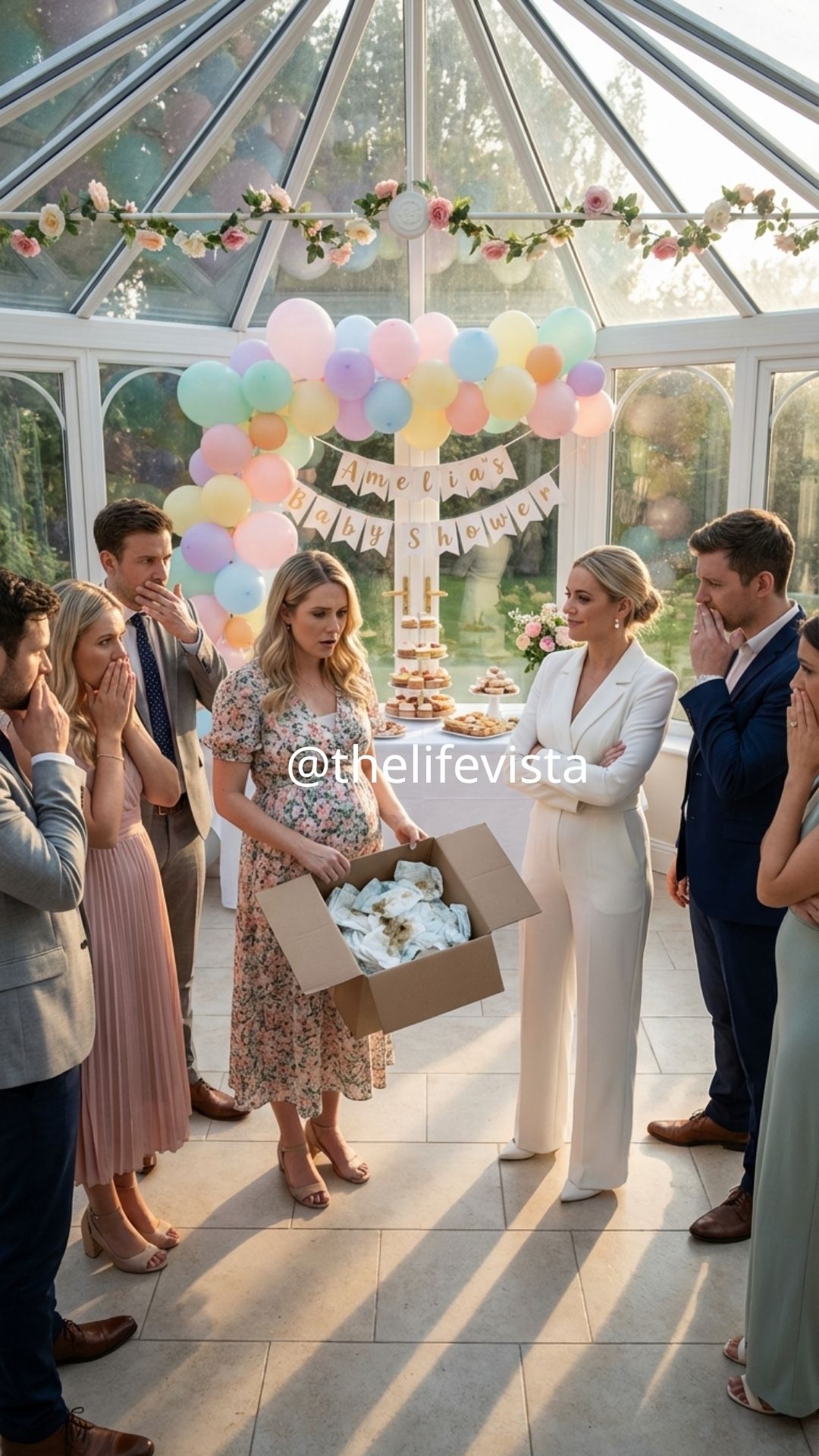 By the time my sister pushed the oversized gift box across the head table, the baby shower had already become the kind of afternoon people later describe as beautiful without needing to think very hard about why. The backyard of our rental venue in Charleston was washed in soft spring light, the pastel balloon arch moved gently in the breeze, and the dessert table looked almost too carefully arranged to touch, with tiny frosted cookies, lemon bars dusted in sugar, and a three-tier cake topped with a gold script sign that read Welcome, Baby Girl. My neighbors were laughing near the mimosa station, two women from my office were taking photographs under the floral backdrop, and for the first time in months I had let myself believe I could stand in the center of a happy occasion without waiting for someone to ruin it.