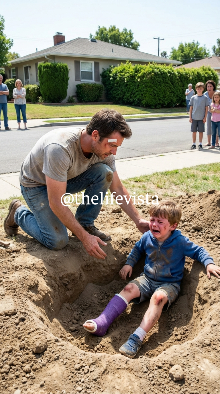 “Daddy…” Leo sobbed, the sound weak and ragged. David dropped to his knees. He didn’t touch the leg. He knew enough about trauma not to move him.