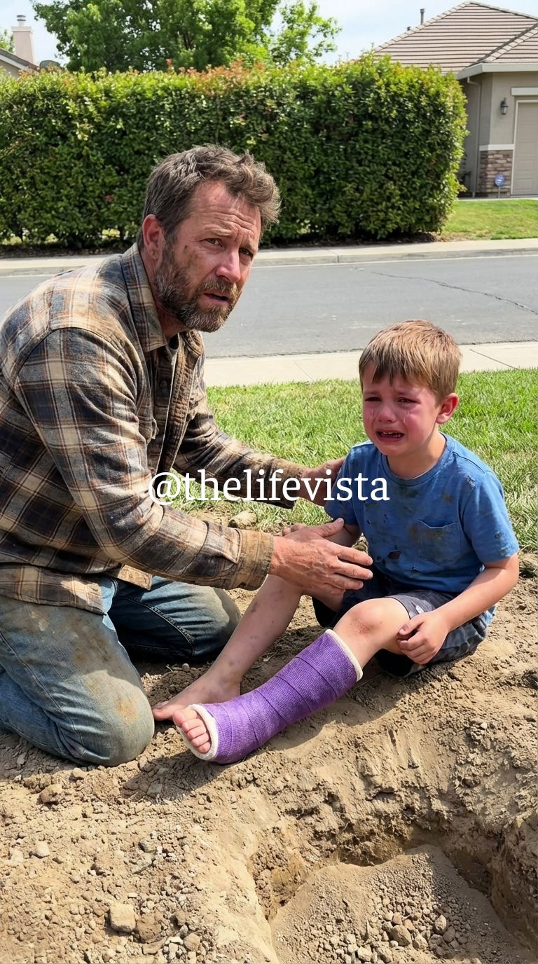 “Daddy…” Leo sobbed, the sound weak and ragged. David dropped to his knees. He didn’t touch the leg. He knew enough about trauma not to move him. “I’m here, Leo. I’ve got you,” David whispered, his voice trembling. He brushed the hair from his son’s forehead. His hand came away with a smear of blood from a gash near the hairline.