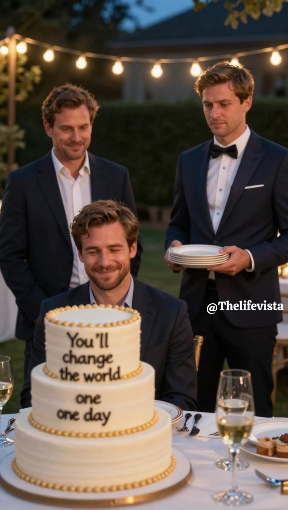 I didn’t know whether to laugh or lie down. Then came dinner. We’d moved into the backyard where a long table had been set up under string lights. It was beautiful. I’ll give them that. But as the trays of ribs and potato salad came out, Aunt Lisa emerged from the kitchen with a massive cake. I froze.