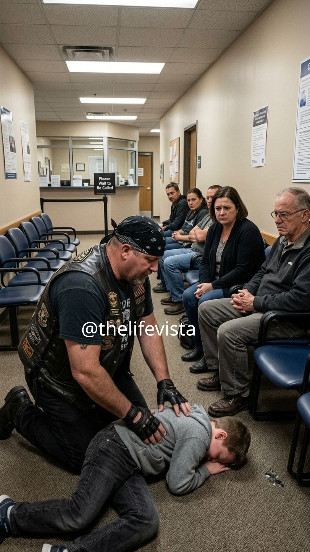 On a chaotic Wednesday afternoon in our overcrowded Midwest clinic, my autistic son collapsed onto the linoleum, overwhelmed and screaming as the waiting room fell into a tense, judgmental silence. Whispers spread, eyes stared, and I felt completely alone. Then a burly biker in worn leather stepped inside—and did something that silenced everyone.