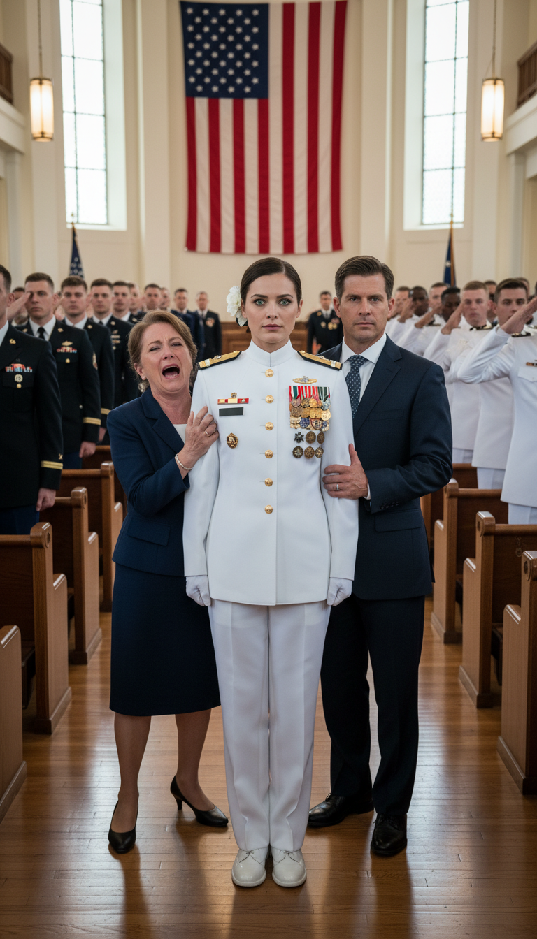 Behind her, the small honor detail Ethan had arranged—young sailors from my first command—shifted subtly, not threatening, just present. The chapel felt tighter, as if every choice had narrowed into a single line.