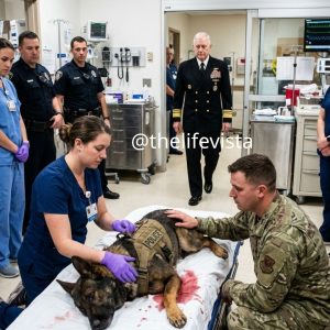At 1:17 A.M. inside an almost drained Norfolk emergency room, staff brushed off a first-year nurse who stepped in to help a wounded Navy working dog and told the handler flatly, “This isn’t a veterinary hospital.” But moments later, when Admiral Richard Holloway strode through the sliding doors, the tension in the room snapped tight, conversations died mid-sentence, and suddenly every assumption about policy, rank, and who deserved care shifted in an instant.