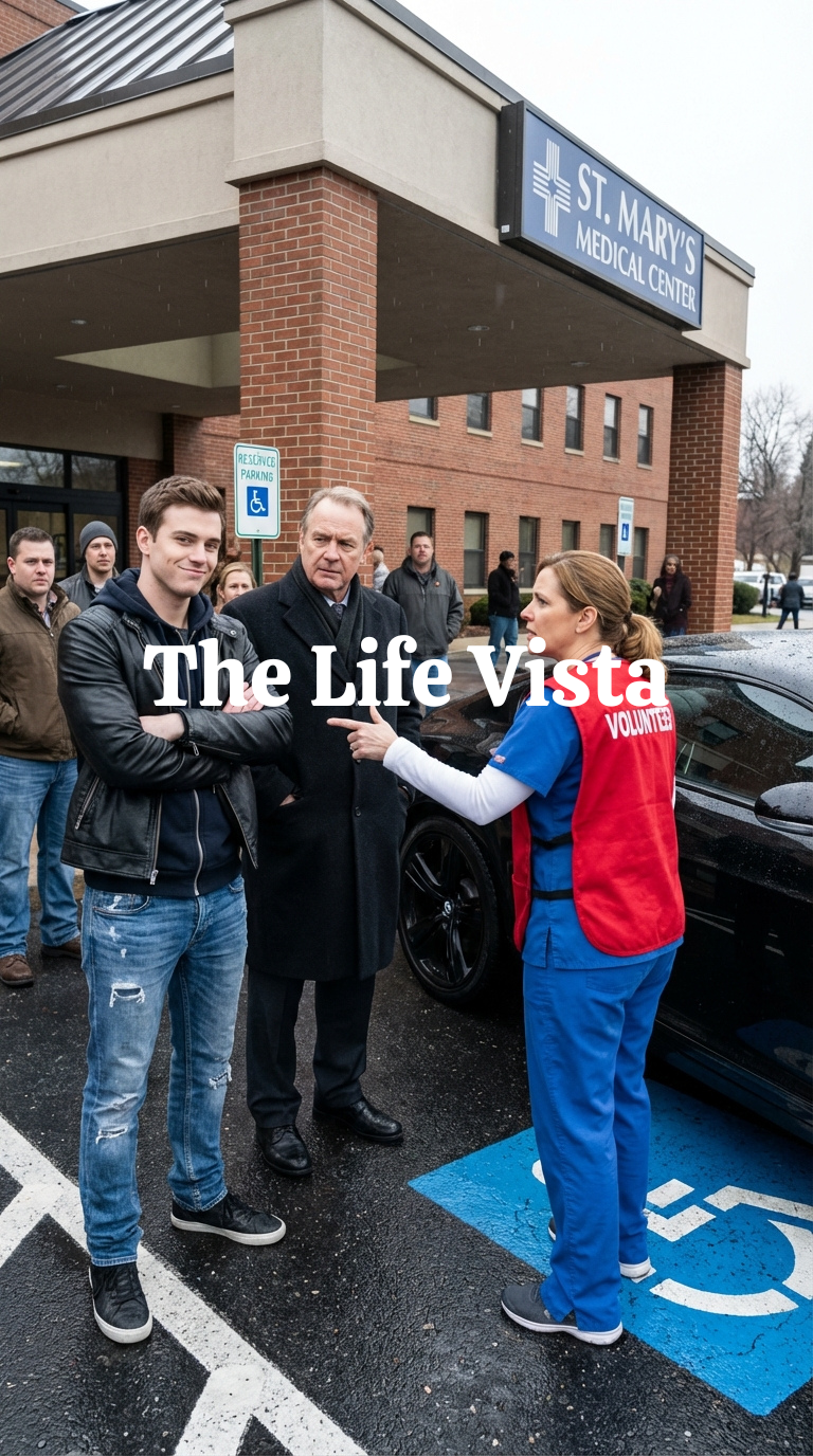 The first time I noticed the sports car, it wasn’t because of the sound, even though it roared like a promise that had never learned the meaning of restraint, but because of where it sat, angled just enough to block the sloped curb that led from the parking lot to the automatic doors of Saint Elwood Medical Center, a space painted bright blue and marked clearly for people whose lives already required more effort than most of us ever noticed.