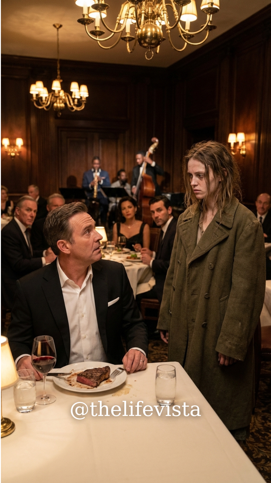 The night Lyra stood beside my table and whispered for leftovers, I believed I was a self-made man enjoying a private dinner.