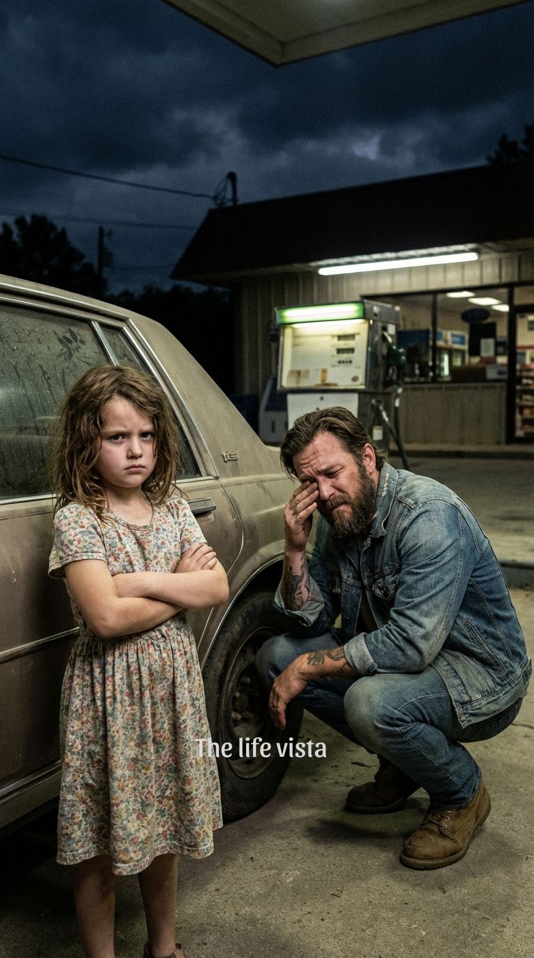 The kind of silence that doesn’t comfort you—it watches you. The gas station sat alone under flickering lights, a square building that looked like it had outlived every plan anyone ever had for it. A place people didn’t stop unless they had to.