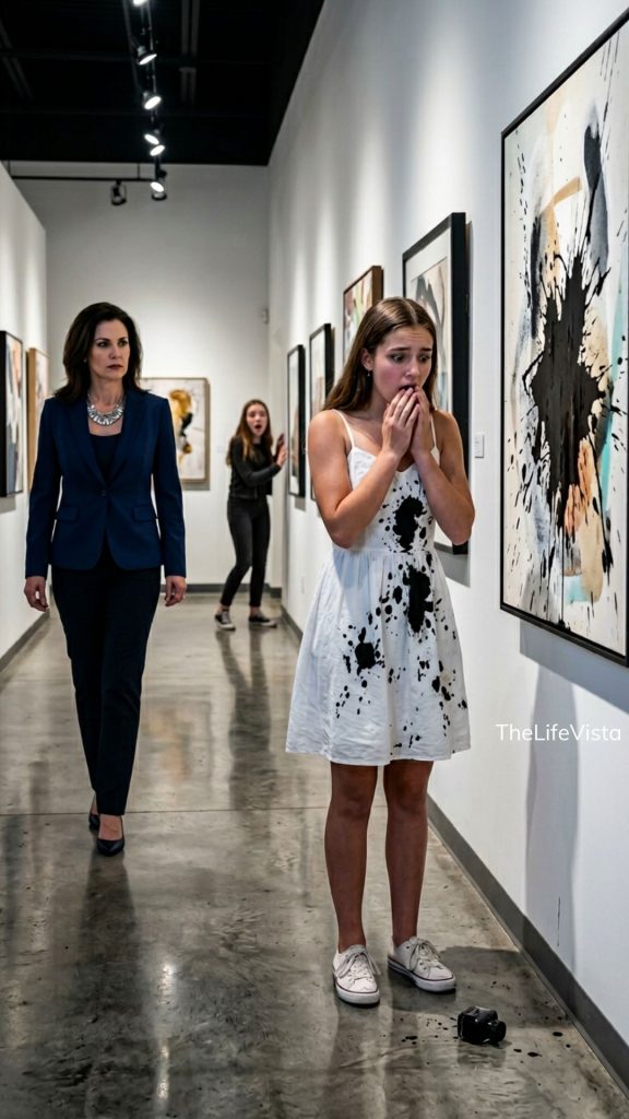 I was still standing there in my ruined white dress, black ink running down my wrists, staring at the painting I had spent six months building. Vanessa’s smile d!ed first. That was the beautiful part. Because until my mother arrived, she still thought this was just another rich-girl humiliation scene she could laugh her way through. She still thought the art show belonged to her because everything at school usually did. The right table. The right friends. The right last name. The right parents on every donor wall. She had no idea she had just attacked the one thing my mother taught me never to leave undefended: documented work.