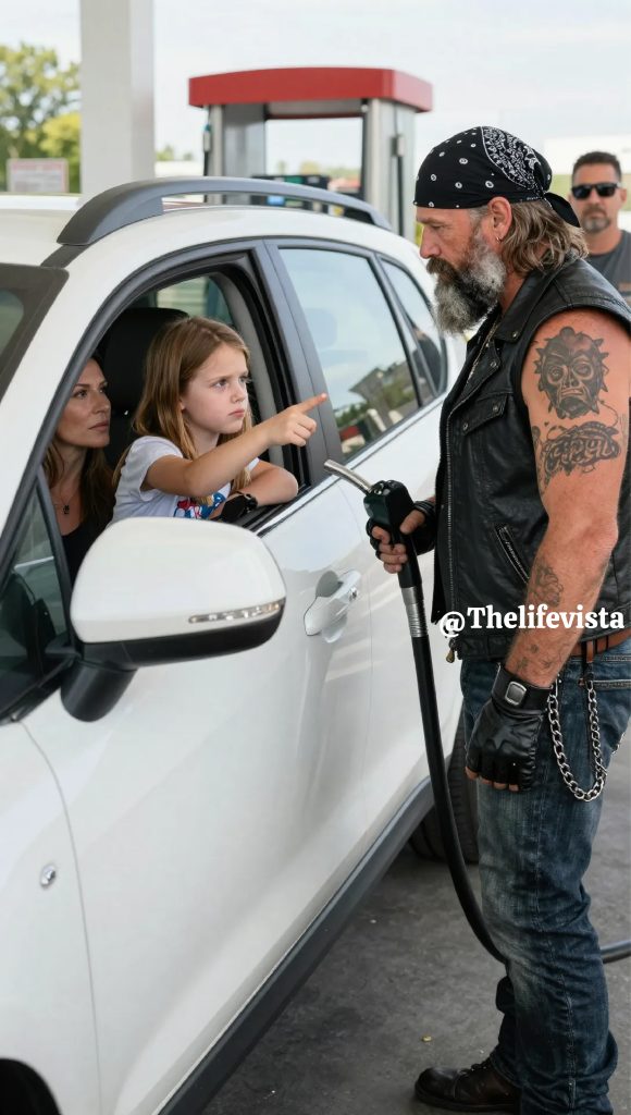 The child raised her hands to a stranger in the middle of a Wyoming blizzard at a moment when nearly everyone else was focused only on staying alive long enough for the storm to pass, and because of that, almost no one noticed that anything was wrong. Snow slammed against the Prairie Ridge travel stop along Interstate 80 with relentless force, the wind driving ice sideways across the lot until the painted lines vanished beneath drifting white. Tractor trailers stood motionless with engines humming, pickup trucks rocked gently on their suspensions, and motorcycles crouched under the awning like dark animals dusted in frost. The storm showed no sign of easing, and no one expected it to.