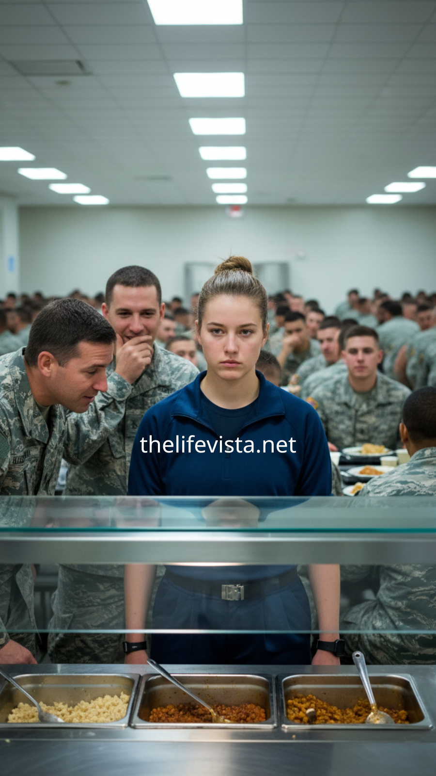 The mess hall buzzed with noise—the clattering of trays, laughter, bragging voices bragging about shooting practice and endless drills in the scorching field. Marines filled the room like iron statues brought to life, confident, tired, hungry, and proud.