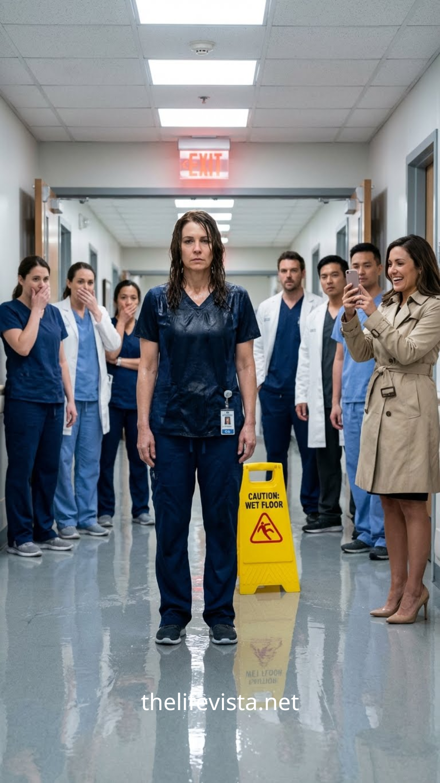 Cold water streamed down my hair, soaking my scrubs, dripping onto the white floor beneath us. Gasps echoed in the hallway. Nurses froze. Patients stared. She wasn’t embarrassed. She laughed.