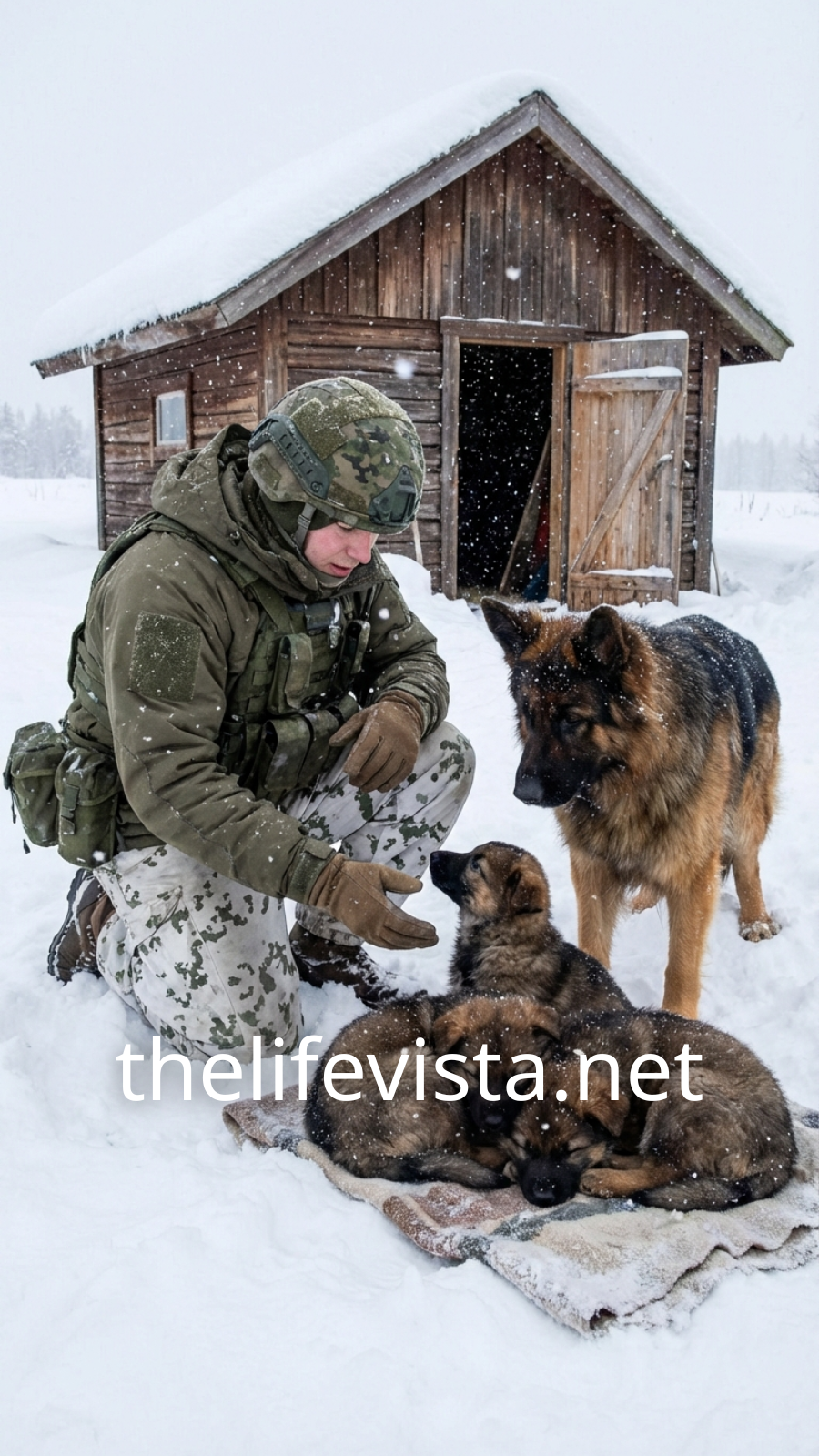 Behind him, the cabin glowed with life. The shelves were lined with framed photographs, not of soldiers or medals, but of eight small German Shepherd puppies with new families, each picture marked with a handwritten note. One read, She’s training to be a therapy dog. Another, He sleeps with my son every night.