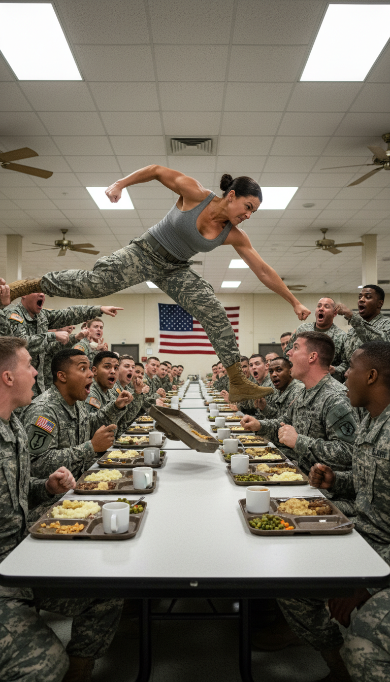 She was the only woman standing among forty elite male trainees. Tall, controlled, and expressionless, Evelyn moved through the mess hall with deliberate calm—until five recruits stepped into her path. Marcus Hale, Connor Reed, Victor Shaw, Ethan Moore, and Daniel Kazan had already established themselves as the program’s strongest unit. Their block wasn’t accidental.