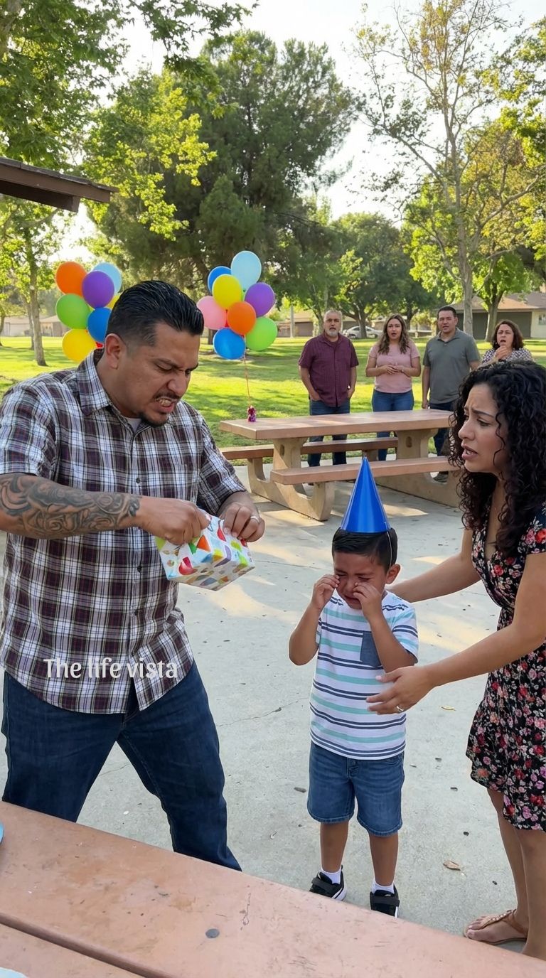 “Step Back!”: A Biker Snatched a Crying Boy’s Birthday Card and Ripped It Apart—But His Intense Focus Revealed a Life-Saving Secret No One Saw Coming.