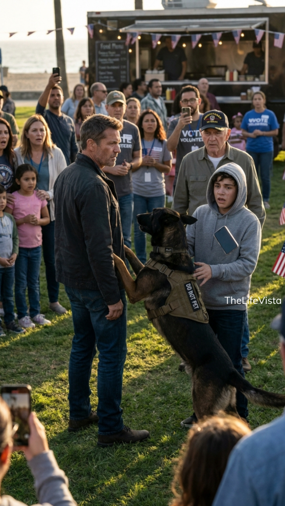 The community fundraiser in Seaside Harbor Park was supposed to be simple: booths, flags, donation jars, and families taking photos with service dogs. Ethan Cross kept to the edge of the crowd the way he always did—shoulders relaxed, eyes scanning, voice polite but minimal. Most people saw a quiet man in a plain jacket. No one would guess he used to run K9 operations for a special warfare unit, because Ethan worked hard to keep that life sealed away.