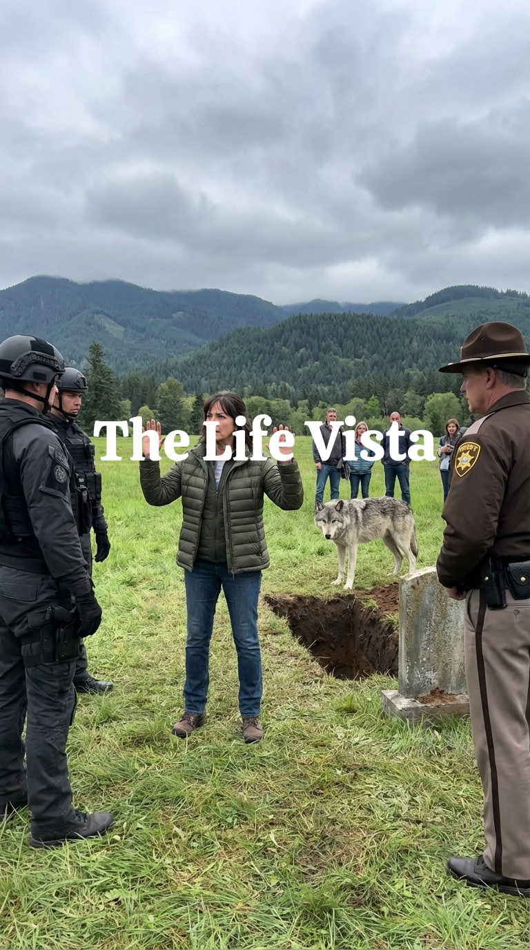In the mountain town of Riverton, Wyoming, where the forest pressed so tightly against the last line of houses that even silence seemed to listen back, people grew up believing fear was a form of wisdom, that survival depended on knowing what to avoid, what to chase away, and what to destroy before it decided you were weaker, which was why the morning the wolf appeared at the gravesite did not feel like a miracle or a mystery to most people, but a threat that needed to be handled quickly, decisively, and with force if necessary.