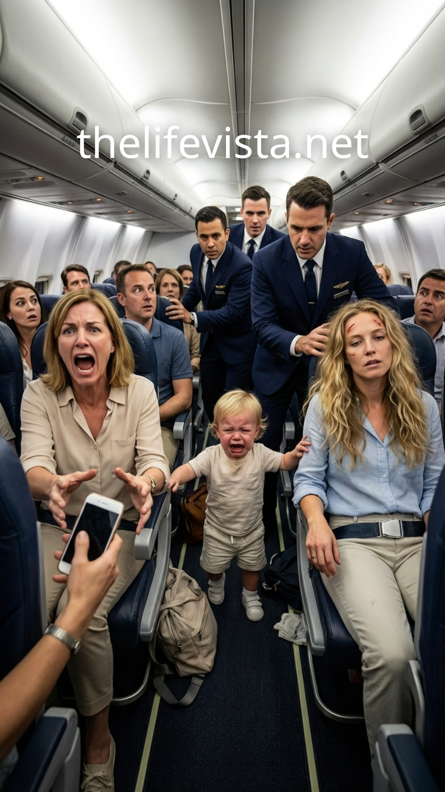 She screamed. She pleaded. She threatened legal action and online exposure. The child clung to her, crying harder now, confused and frightened. Airport security was summoned. Watching them walk down the aisle felt surreal—like witnessing a slow-motion unraveling.