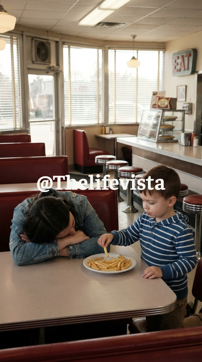 He found a table in the far corner. A wealthy family had just left, leaving behind a half-eaten burger and a small pile of cold, salted fries. Lucas didn’t look around. He didn’t wait for permission. He sat down and reached for a dry crust of bread with hands that were shaking from a hunger that felt like a slow-moving fire in his stomach.