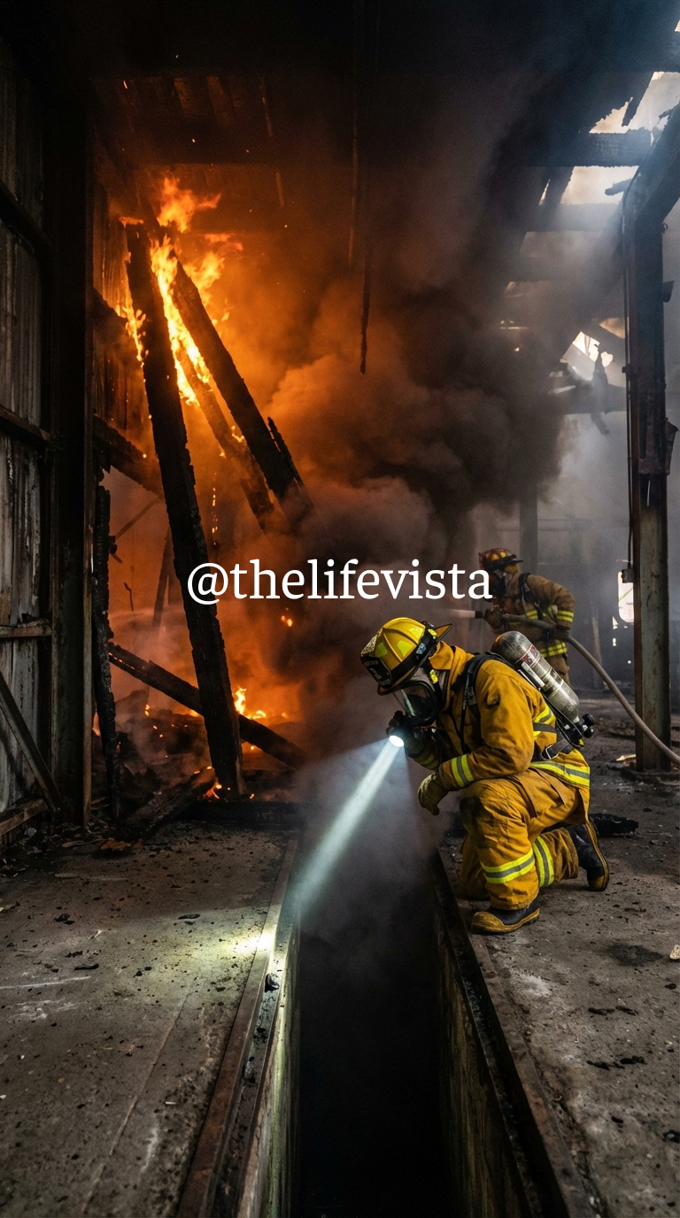 The basement was worse than I expected. Fire had already claimed most of the space, and smoke pressed down so hard it felt like gravity had increased. I swept my flashlight across the far corner, praying and dreading what I might find.