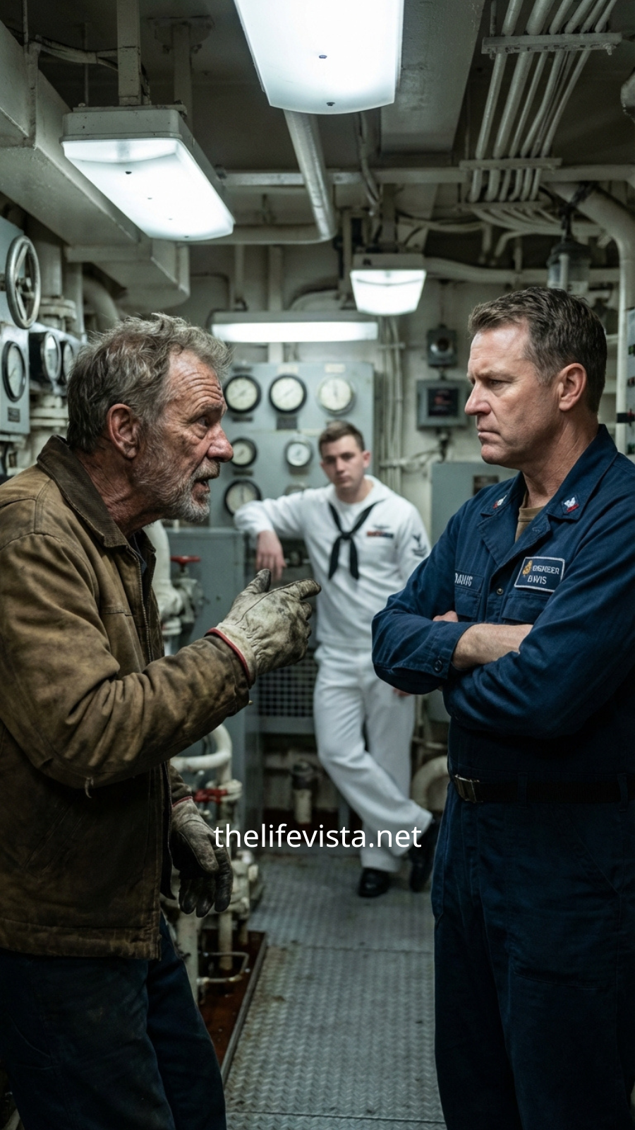 Shawn didn’t look at the high-resolution monitors glowing with emerald data. He didn’t look at the ship’s chief engineer, Macallen, who stood with his arms crossed, his face a map of professional skepticism. Instead, Shawn’s hands moved over the pipes. His fingers, calloused and stained by decades of honest friction, traced the lines like a pianist checking the keys before a concerto.
