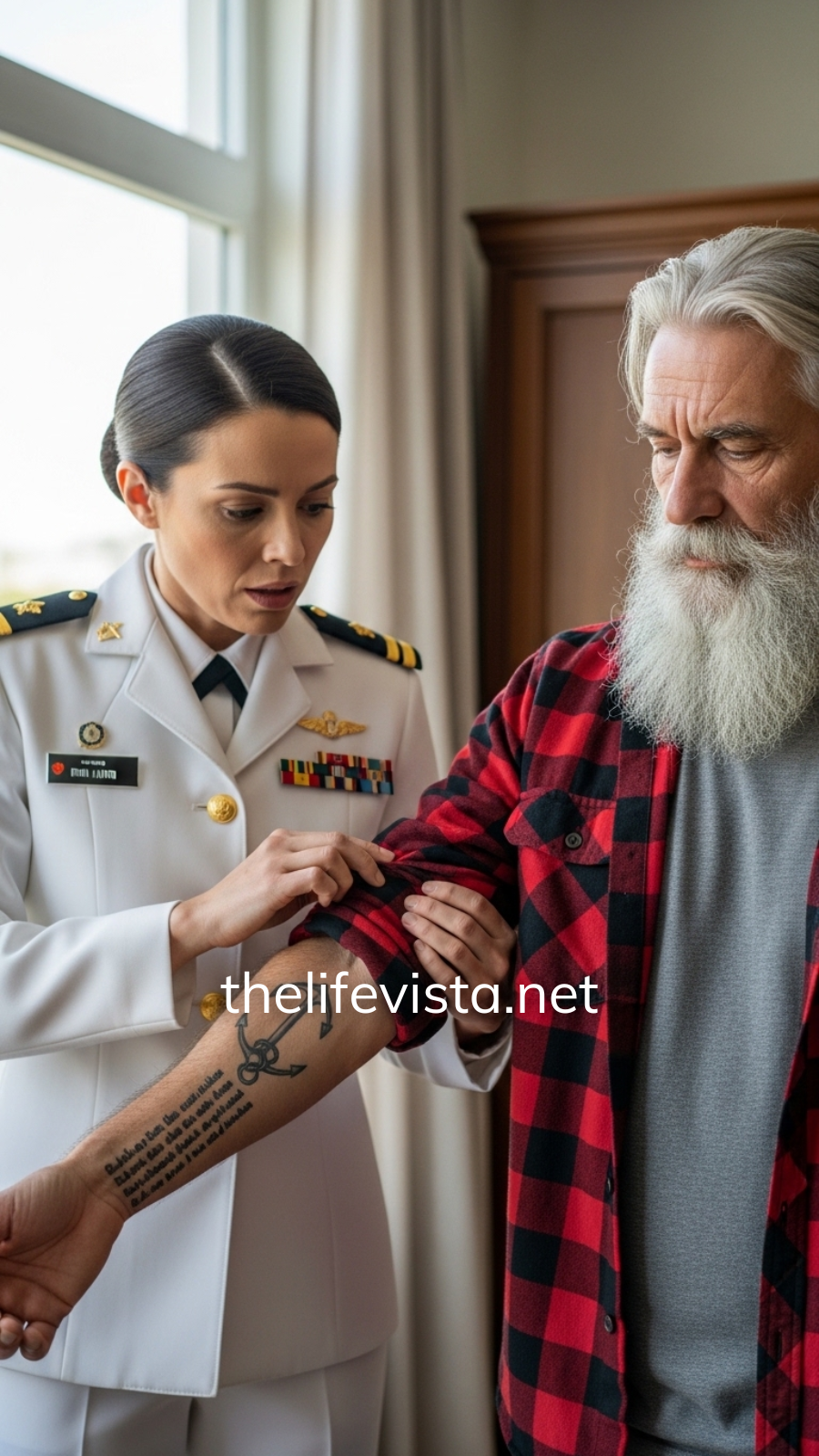 The ceremony continued after that—words were spoken, names were called—but no one would remember the rest. What they carried with them was the image: a father and son standing side by side, one in worn clothes, one in dress whites. Both warriors.