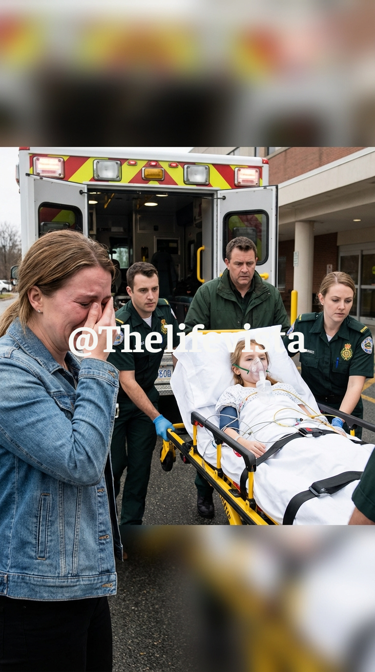By the time Sarah reached the emergency entrance, the ambulance was already parked outside with its back doors open, paramedics moving with focused urgency. The automatic doors whooshed open, releasing a wave of antiseptic air that hit her like something sterile and unreal, a smell that didn’t belong to her warm, noisy life. A volunteer pointed her down a hallway, and she moved on instinct alone, her shoes squeaking on the polished floor, the overhead lights too bright, everything too sharp. When she finally saw Chloe, the sight made her knees weaken. Her daughter looked small and pale against the white hospital sheets, a thin oxygen tube beneath her nose, her freckles standing out starkly against skin that had lost its color. Machines beeped steadily, indifferent and mechanical, as if they were measuring numbers instead of holding Sarah’s entire heart in their rhythm.