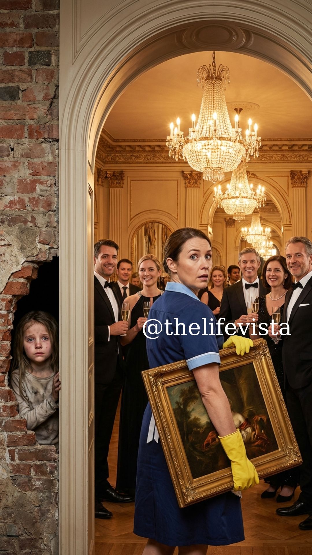 Her heart pounded as her eyes drifted to a large baroque painting hanging awkwardly on the exposed brick wall of the service corridor. It had always seemed out of place—too ornate for such a narrow hall.