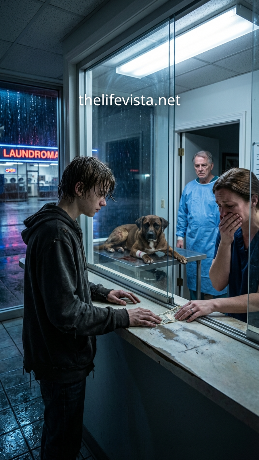 Mason stood, slipping slightly on the wet pavement, and started running. He held the dog tight against his chest like a heartbeat he couldn’t afford to lose. The first veterinary clinic had its lights on but the door locked. A receptionist spoke through the glass and shook her head, pointing to a sign about “after-hours emergency fees.”