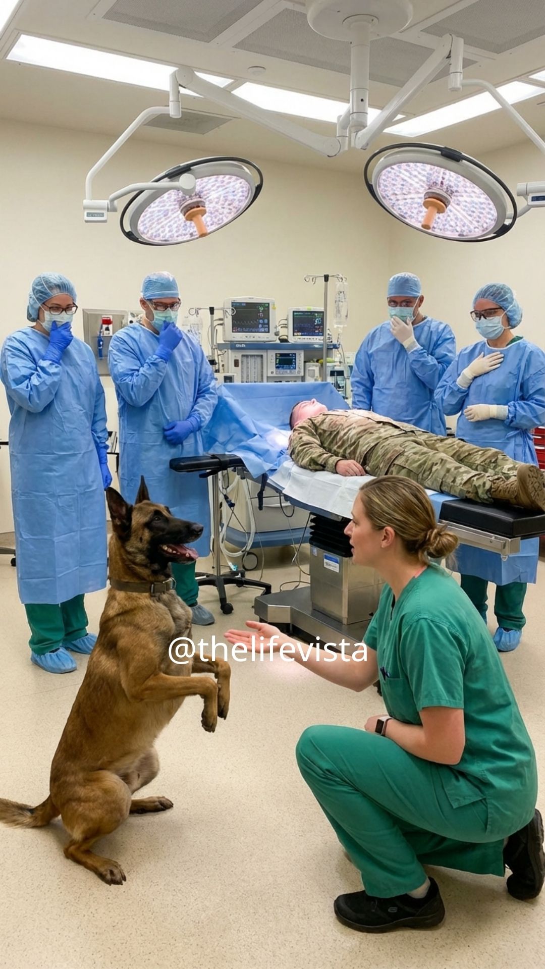 K9 Diesel, Logan’s military working dog, sat rigid beside the body, hackles raised, growling low at anyone who approached the gurney. Blood matted the German Shepherd’s coat, but his focus never wavered from guarding his handler, and the way his eyes tracked every movement made it clear he was measuring threats with the same precision he’d been trained to use in war. Every attempt to move Logan’s body ended in snarling, baring teeth, or Diesel lunging forward, and even the most confident staff found themselves instinctively stepping back as if the line between hospital and battlefield had blurred.