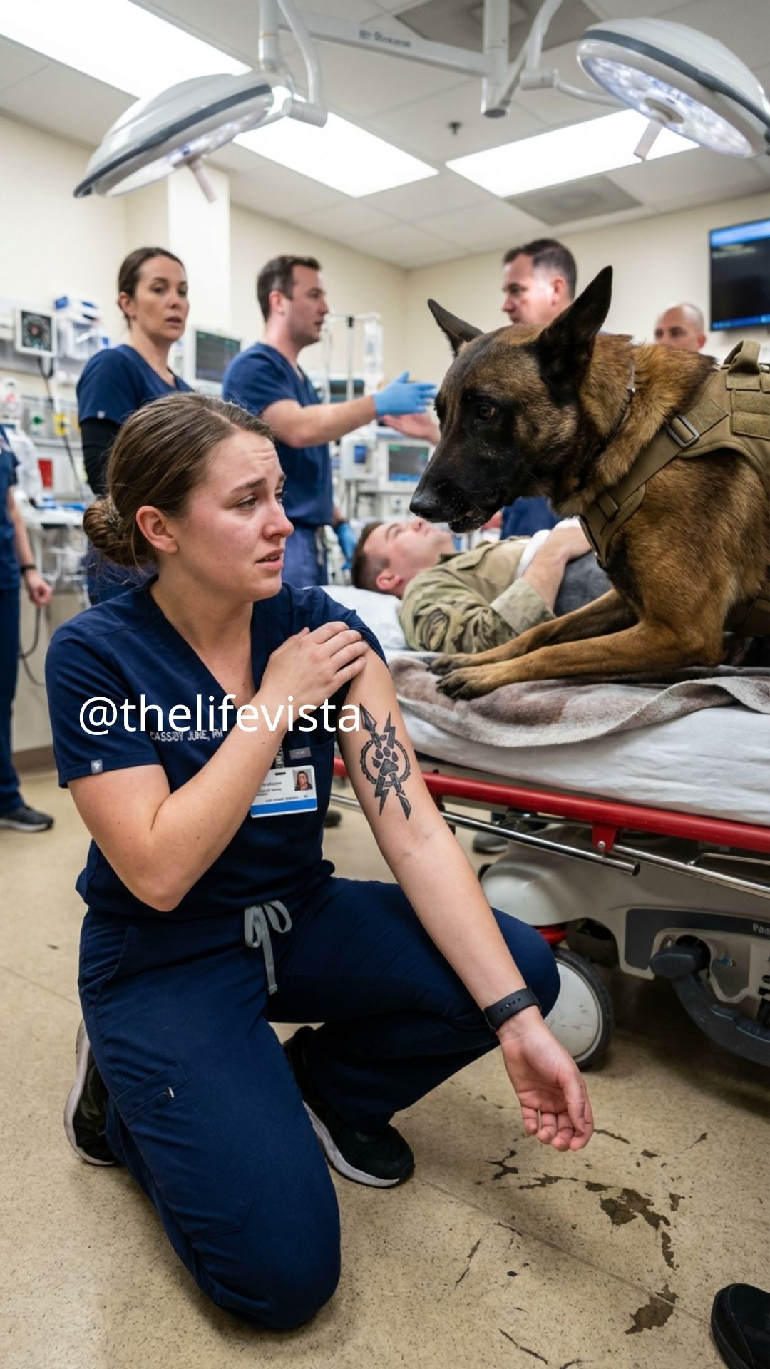 The silence in Trauma Bay 1 was heavier than the lead aprons hanging on the radiology rack. The only sound was the rhythmic wet breathing of the dog and the soft, ragged sobs of the nurse kneeling on the linoleum.