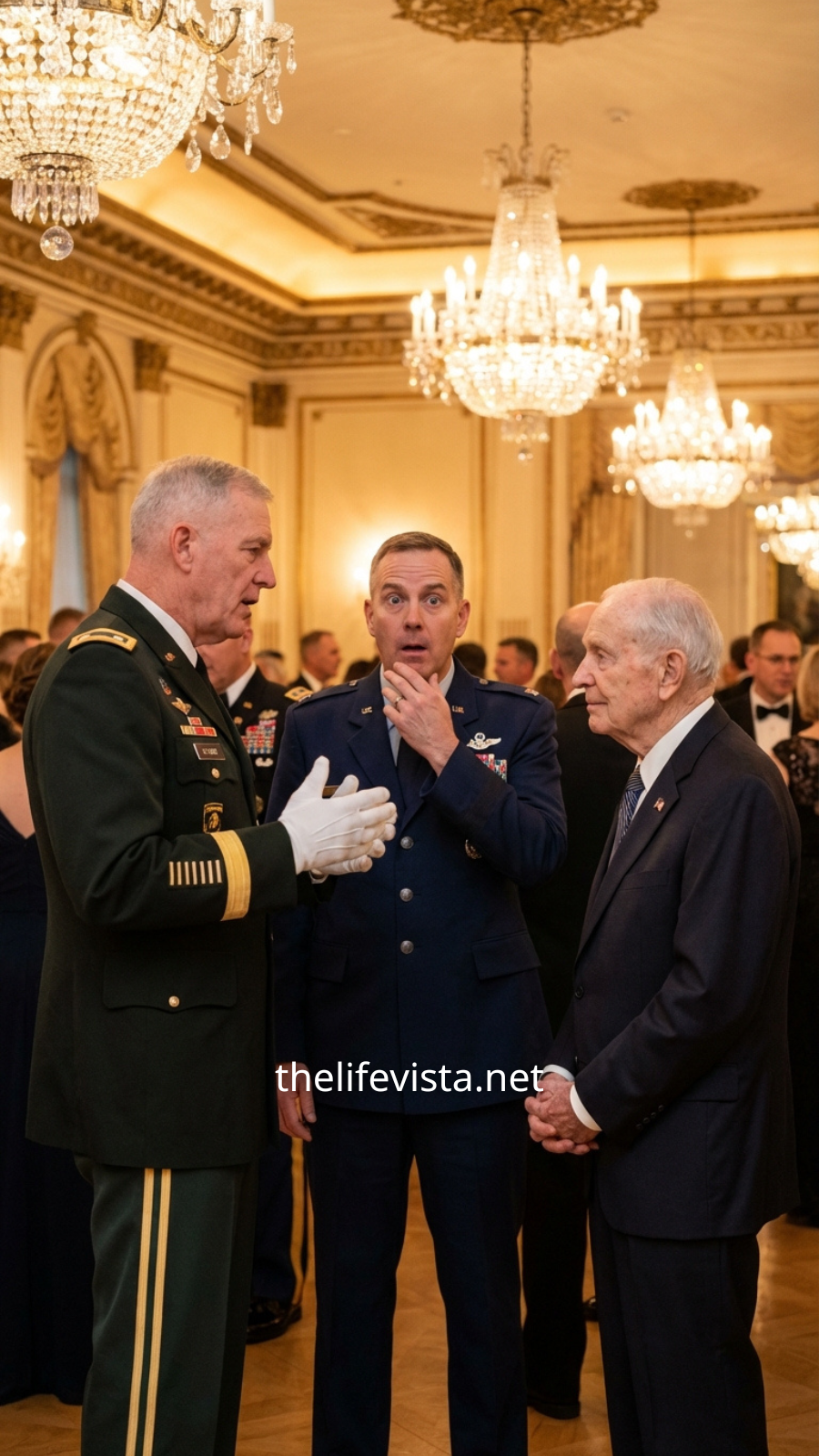 Behind the Colonel, General Harding came to an abrupt stop, his expression changing instantly as recognition struck. His eyes locked onto the old man in the worn suit—and for the first time that evening, someone in the room truly understood who Arthur Vance was.