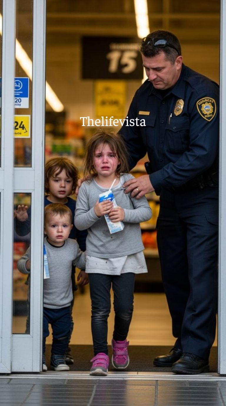 A small carton of milk lay crushed near her feet — the very item she had tried to slip quietly into her bag.