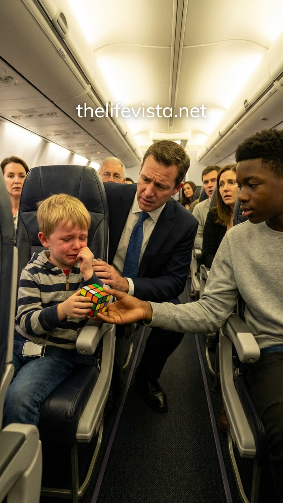 When a wealthy businessman’s young son began crying and kicking nonstop during a cross-country flight, frustration quickly spread throughout the cabin. But then a calm Black teenager rose from his seat and did something so simple—and so powerful—that it silenced the entire plane and changed how everyone present thought about patience, empathy, and understanding.