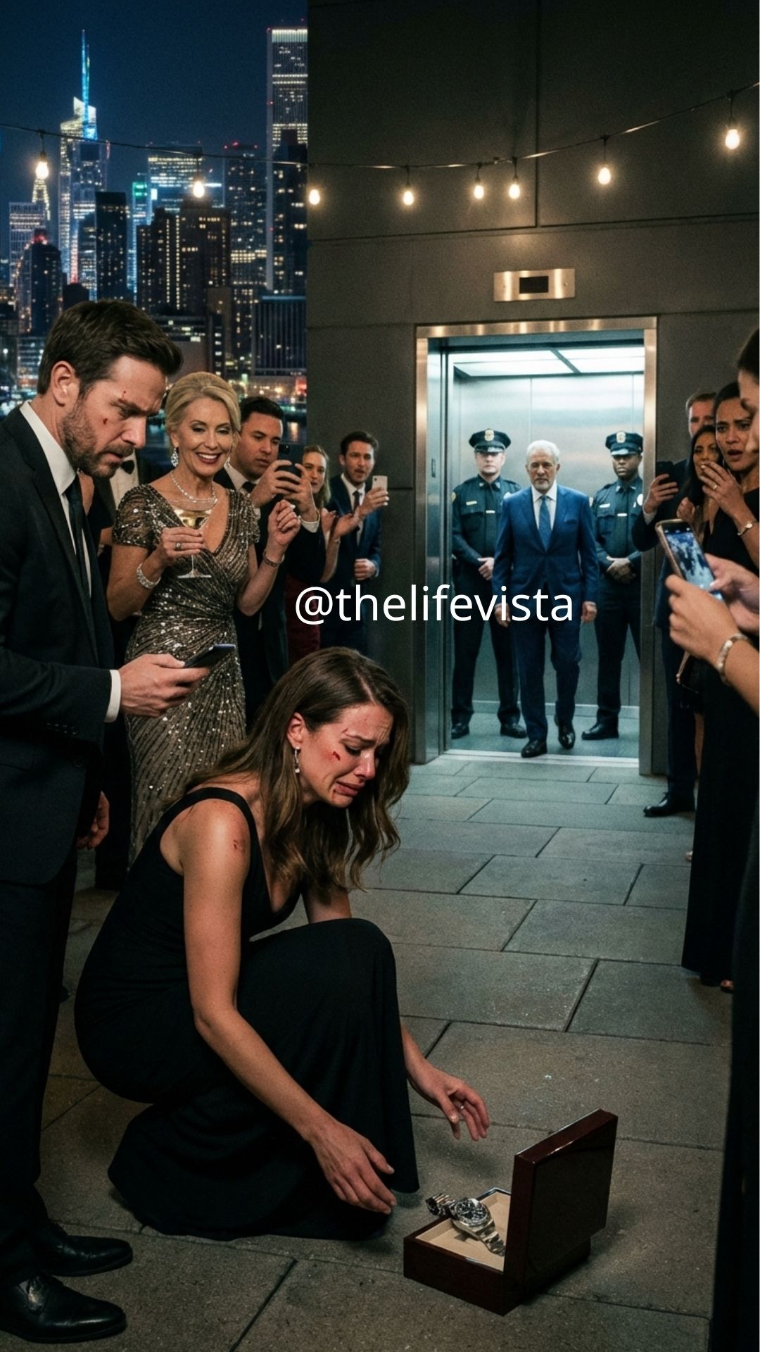 It was a laugh, sharp, staged, and loud enough to turn heads across the rooftop patio of The Halston Lounge in downtown Chicago, the kind of laugh meant to gather witnesses before the humiliation even fully began. Audrey Bennett stood at the edge of the crowd clutching a small gift bag she had picked up on her lunch break, her fingers wrapped so tightly around the paper handles that they had already begun to crease. Inside was a simple watch she had saved for, something tasteful, loyal, understated, and chosen with care because she still believed that care meant something. It was the kind of gift a person bought when they were trying to honor history, not performance, and she had hoped her husband would understand that difference.